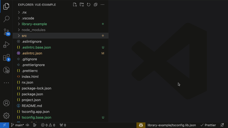 And you’ll have access to Nx generators so that you can generate Vue applications, libraries, components, and more in your workspace: