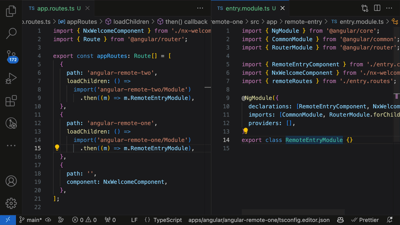 Projects created with Nx’s generators for module federation will now be created with a module-federation.config.ts file (as opposed to a .js file). A new ModuleFederationConfig interface is also exported from the @nx/webpack plugin.