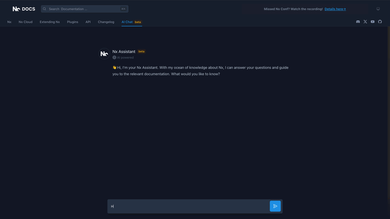 We’ve added a new AI ChatBot to our docs site. You can access it now at https://nx.dev/ai-chat.